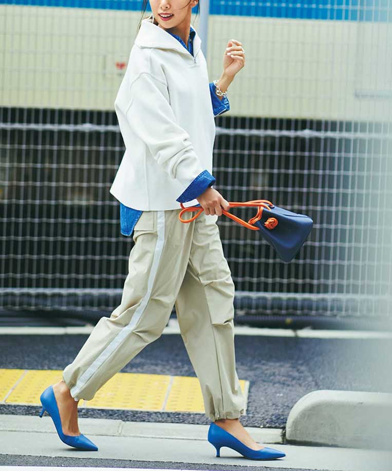 甘さの中にスポーティな軽快さが溶け込み、ひと目で“今”を感じる大人カジュアルなコーディネートに仕上がります。