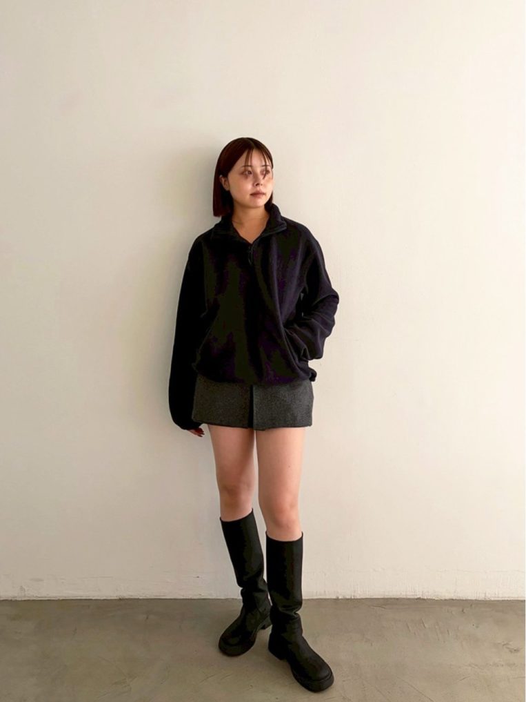 軽やかなフリースでも、どこかアンニュイなシルエットが女性らしさを引き立て、一枚で着ても、タートルネックやシャツを重ねてもサマになります。