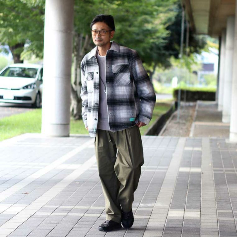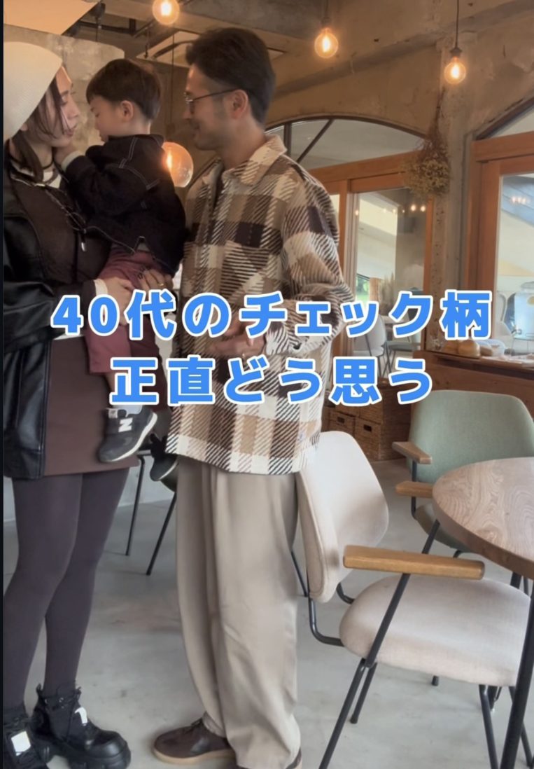 大柄チェックでも、「ベーシックカラー × 程よいゆったりシルエット」を選べば子どもっぽくならず、40代メンズでも大人らしくお洒落に着こなせます。