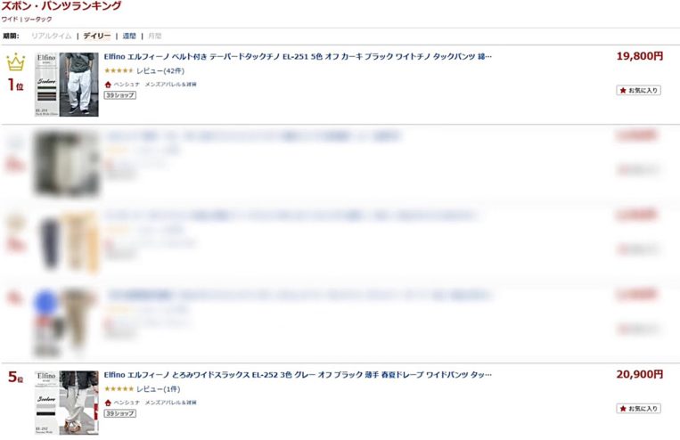 わずか数年で楽天市場のワイドパンツ部門で、
