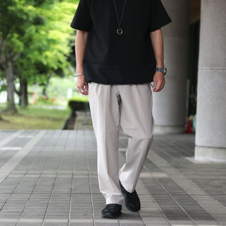 タックワイドは、 ジャケット合わせで仕事着、カットソーやスウェット合わせで休日スタイルに。