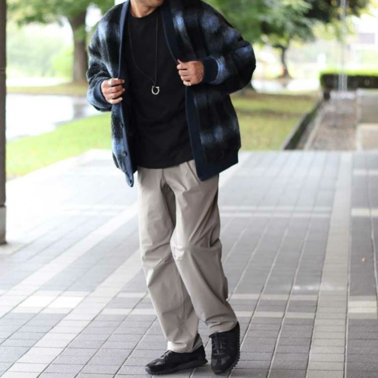 でも、明るめのタックパンツを合わせることで一気に抜け感が生まれる。