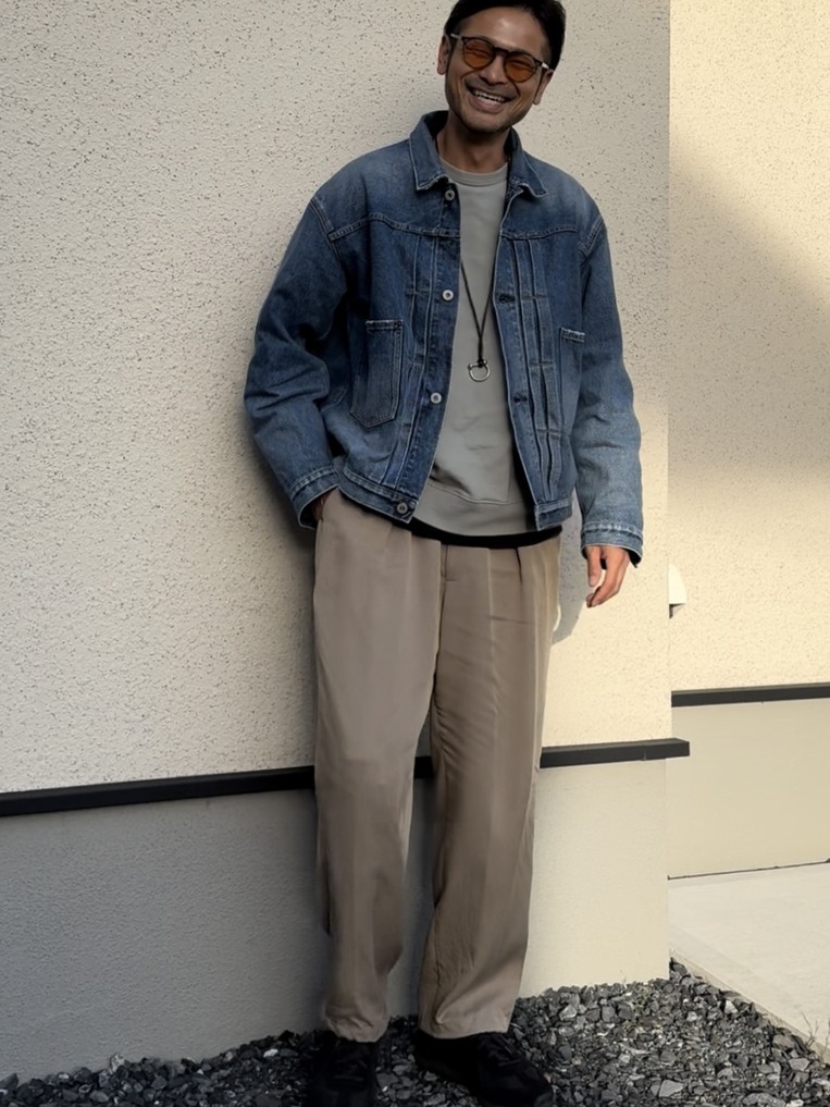 肩の力が抜けた適度なワイド感が、コーデに自然な抜け感をプラスしてくれます。