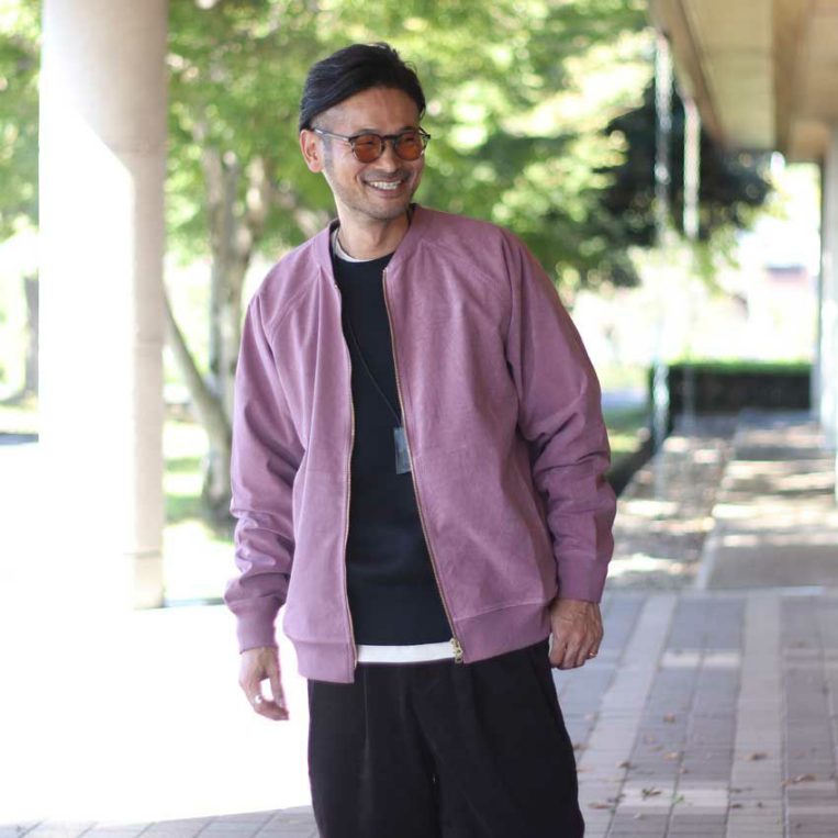 大人メンズが着やすいダスティピンクのブルゾンは、羽織れば即抜け感のあるスタイリングに。