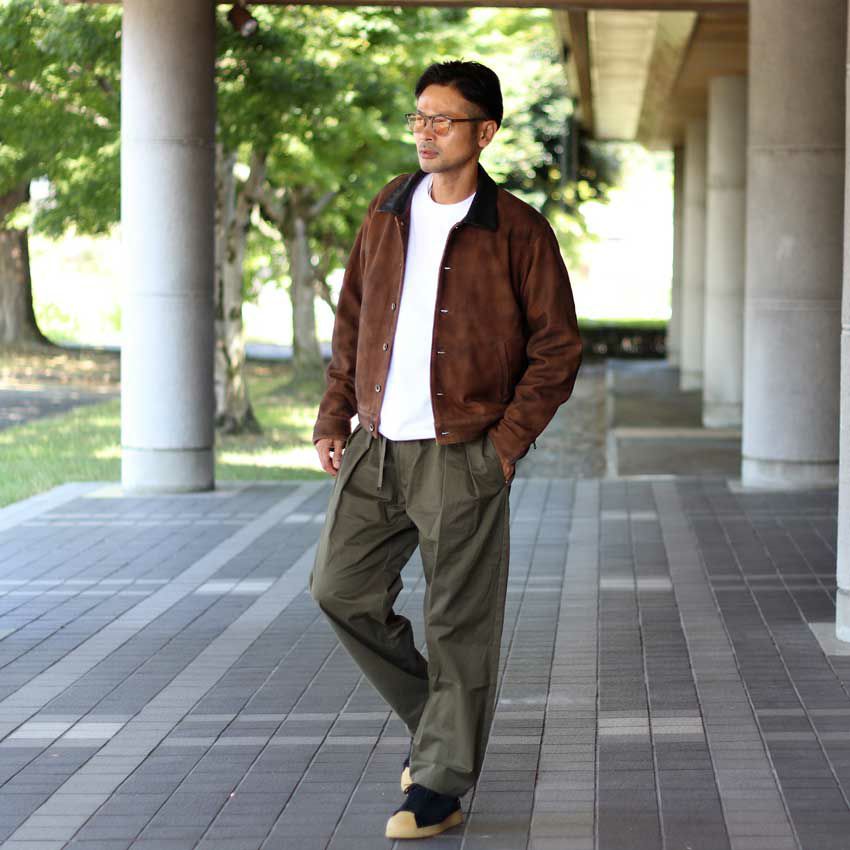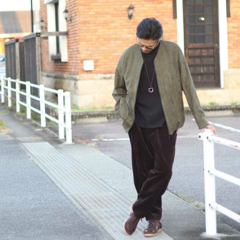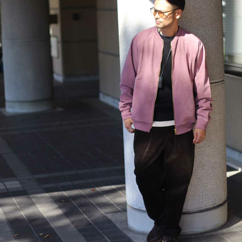カジュアルになりがちなブルゾンでも、スウェード素材になるだけで一気にスタイリッシュな印象に仕上がります。