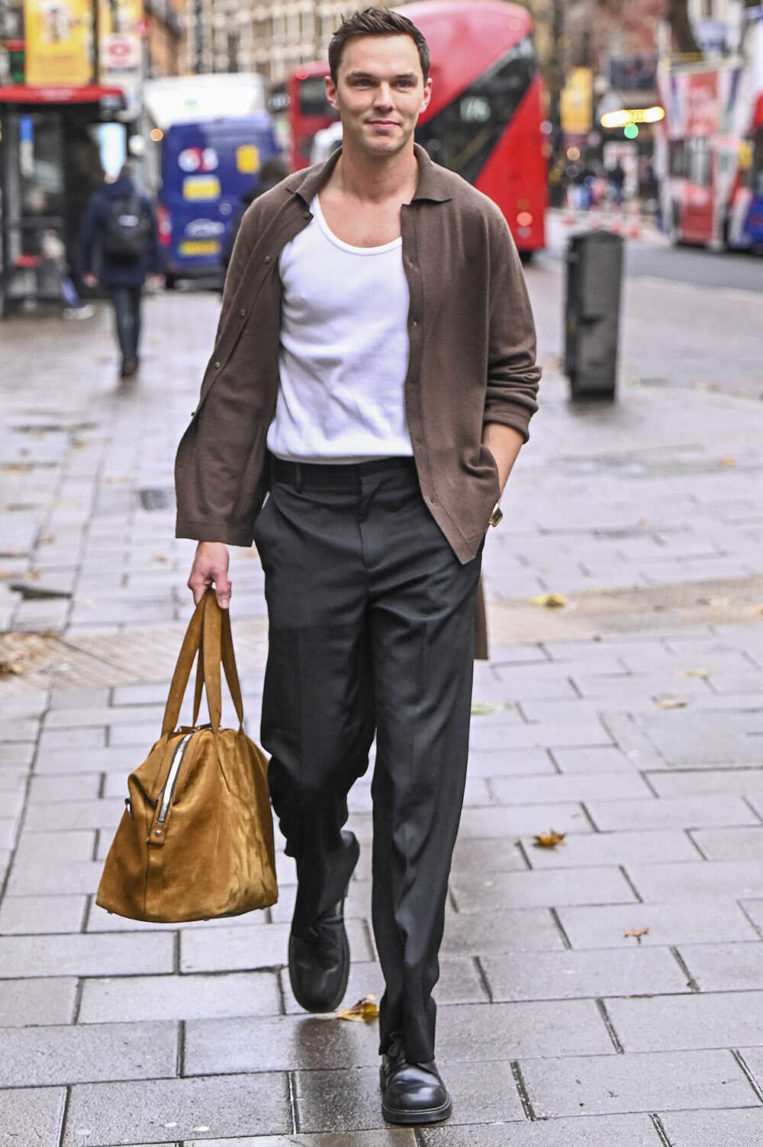落ち着いたトーンながらも存在感のあるカラーで、大人の余裕を感じさせる着こなしに仕上がります。