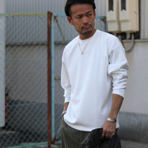 ペラペラの素材の無地Tだと安っぽく見えますよね?素材のハリ感や立体感はかなり無地アイテムを選ぶうえで大切になってきます。