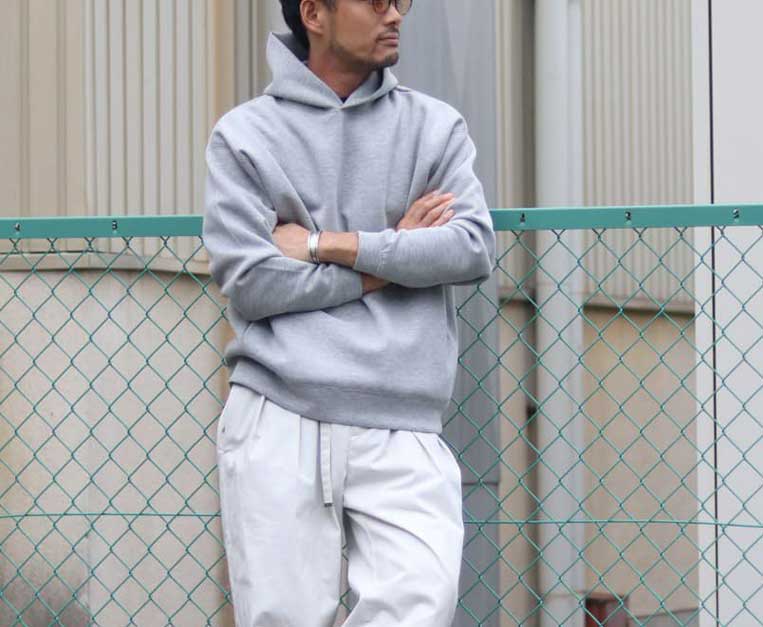 無駄な装飾を削ぎ落とした、素材で勝負するシンプルな無地パーカー。