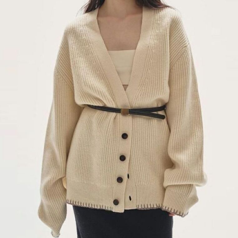 オーバーサイズのニットに施したハンドステッチが印象的なカーディガン。